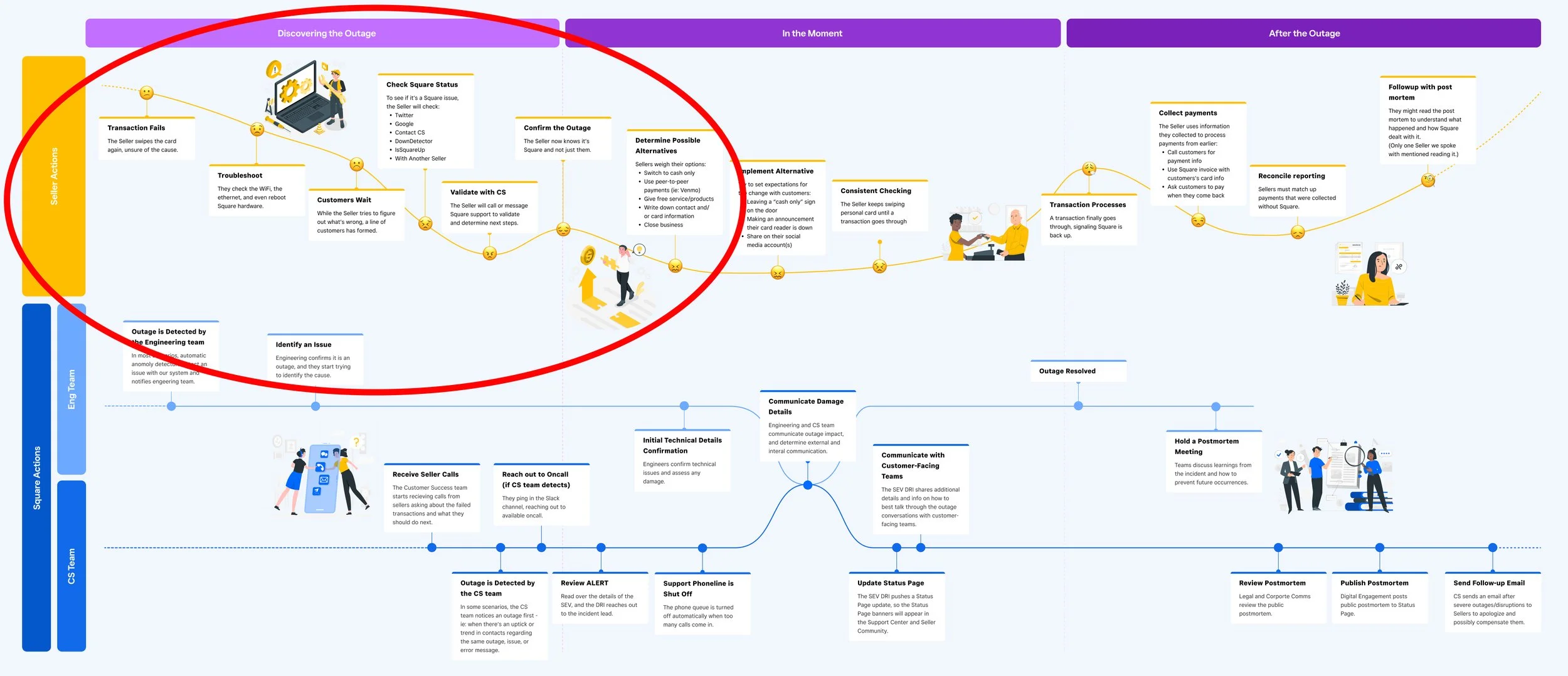 I used a user journey map to pinpoint areas for improvement and discovered that users were attempting to leverage offline mode during outages.
